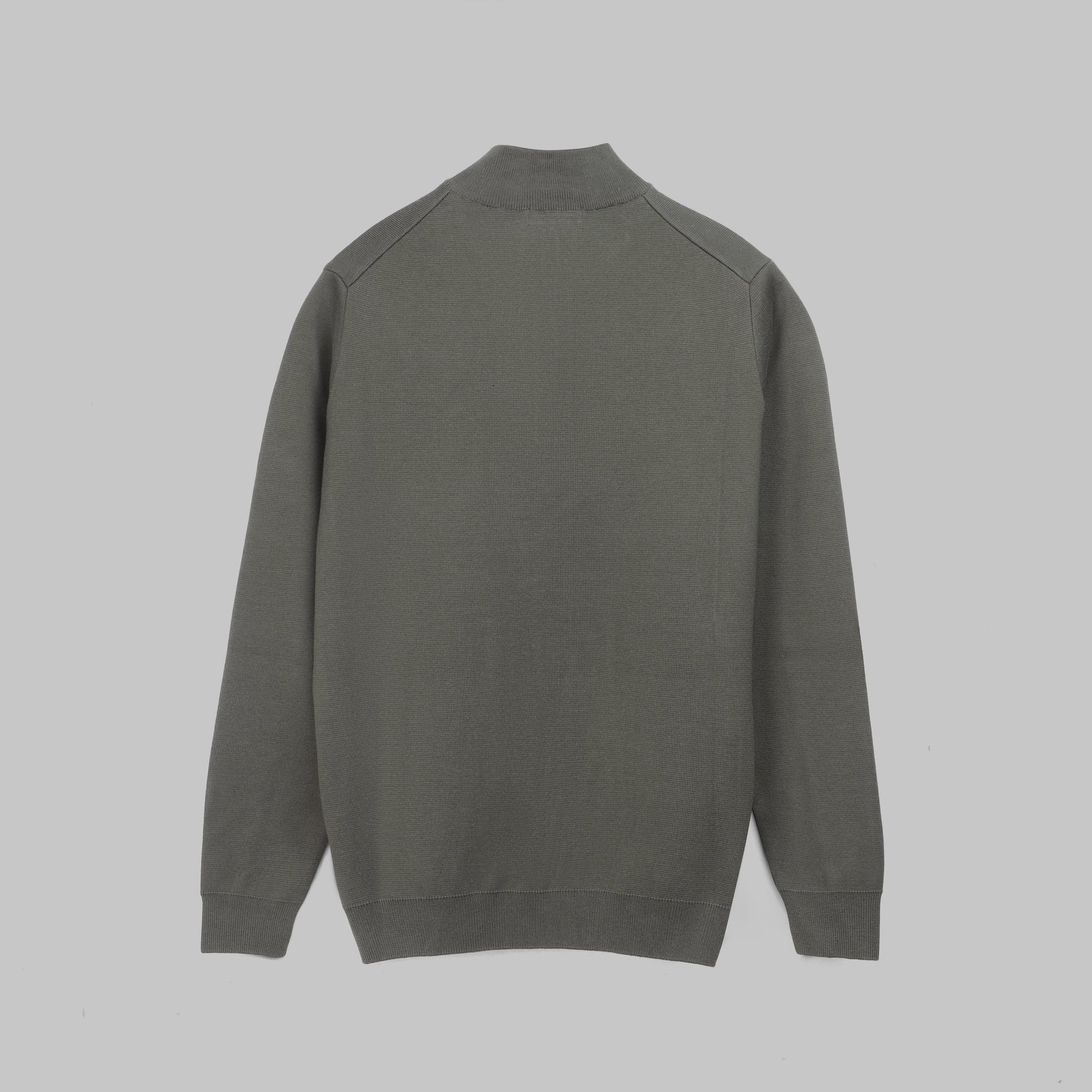 كنزة أساسية بنصف سحاب - زيتوني داكن