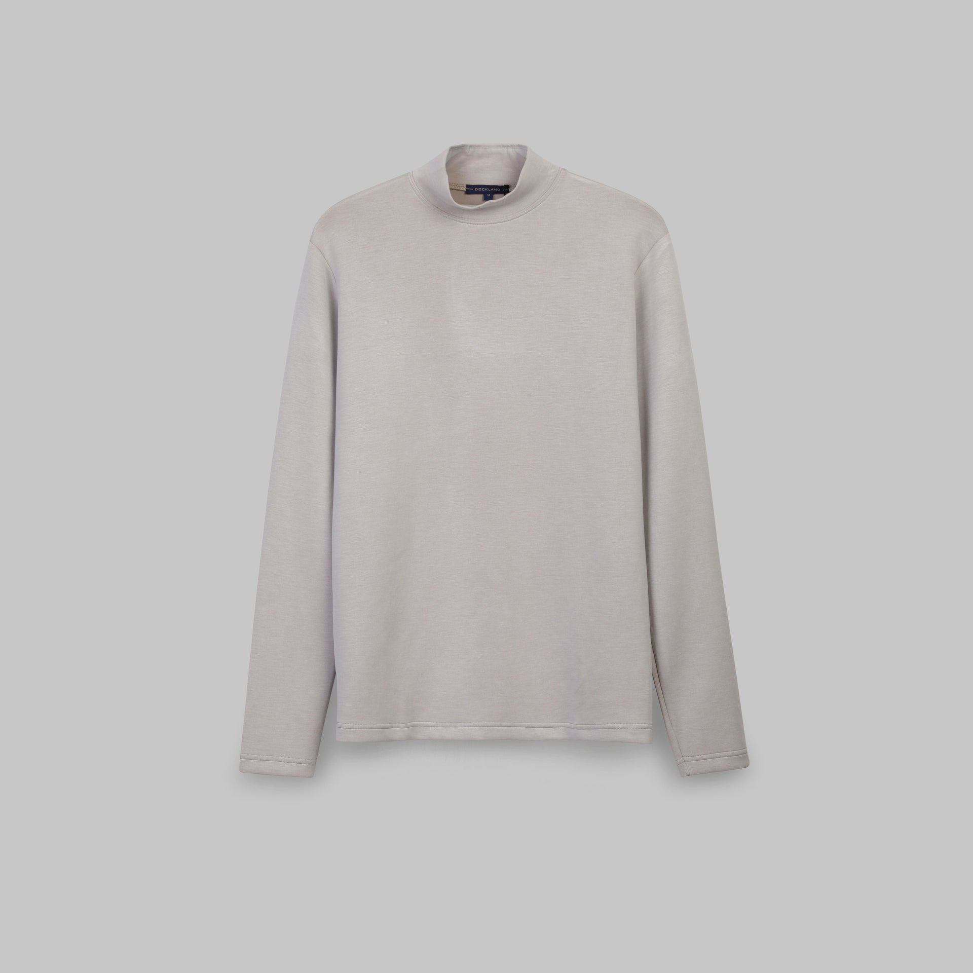 تيشيرت فاخر بأكمام طويلة وقصة نصف رقبة - رمادي فاتح