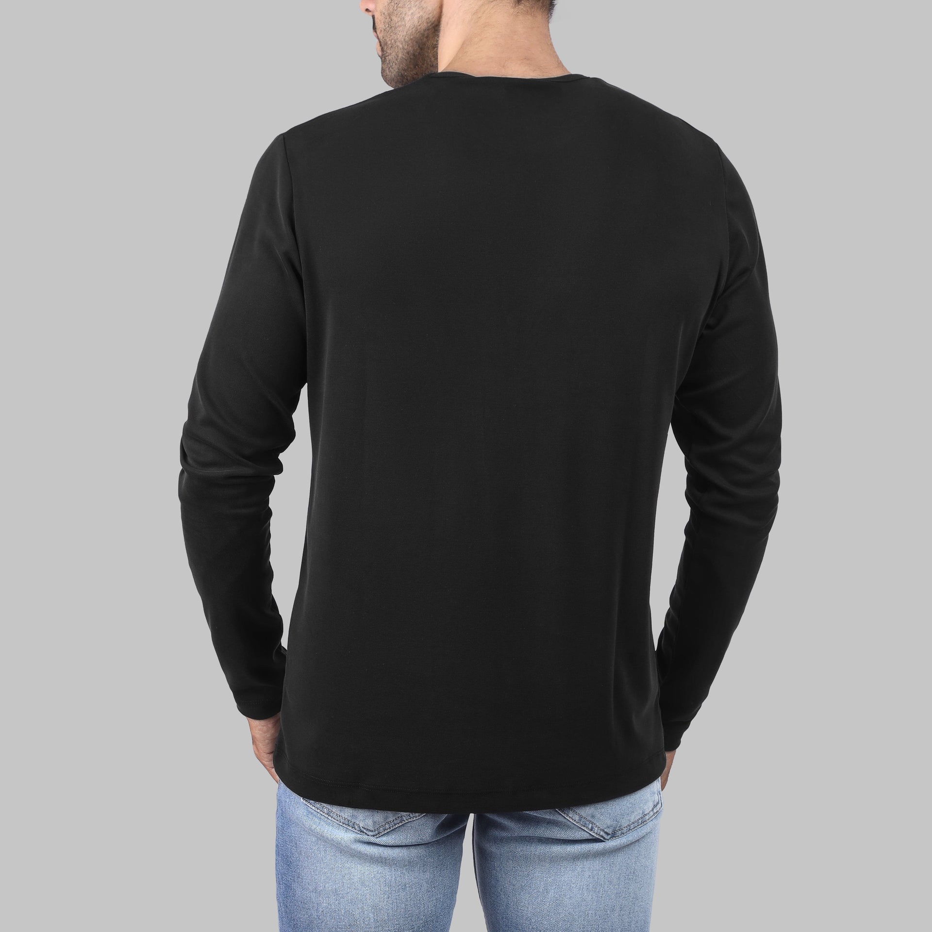 تيشيرت فاخر بأكمام طويلة ورقبة دائرية - أسود