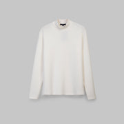 تيشيرت فاخر بأكمام طويلة ونصف رقبة - لون أبيض كريمي