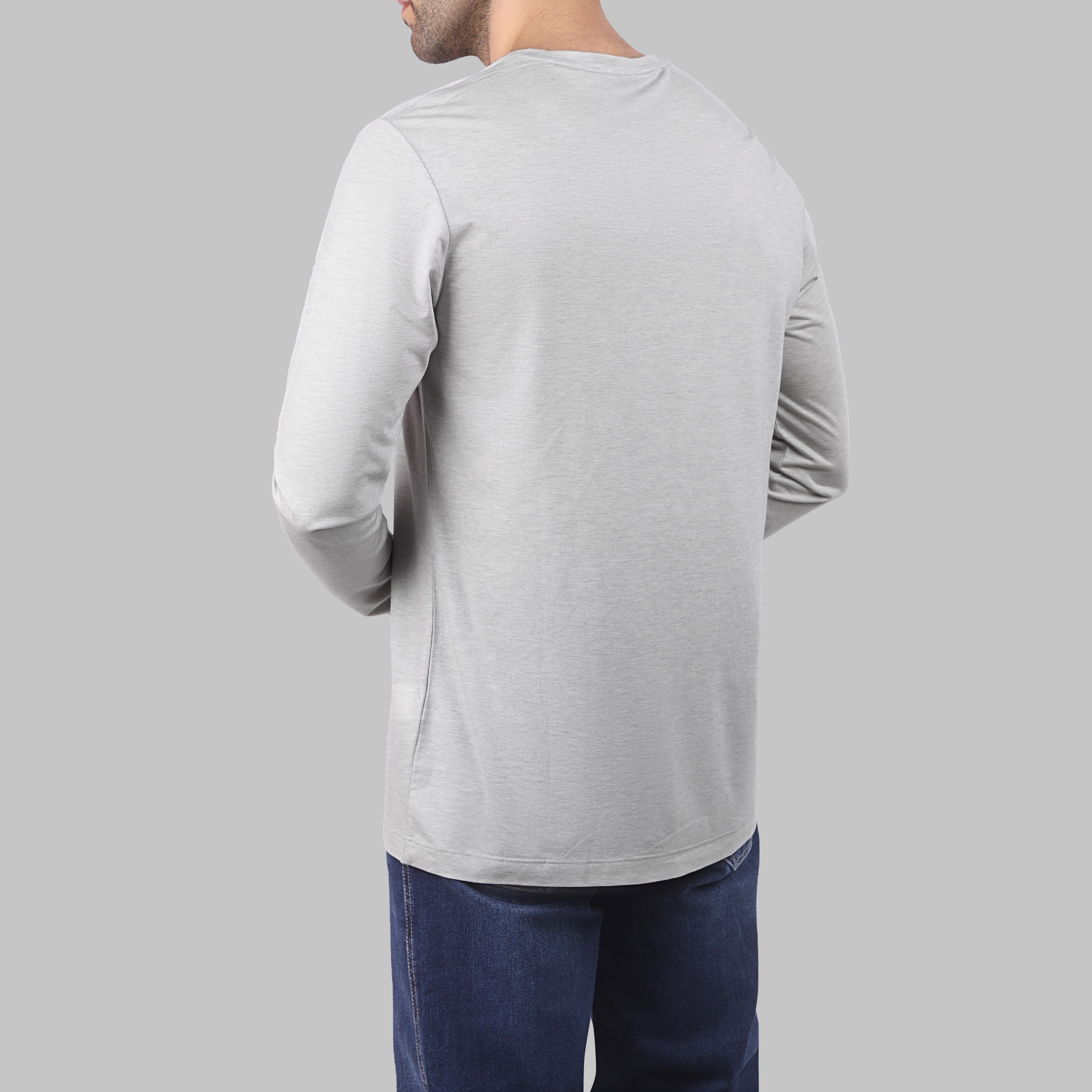 PREMIUM HALF NECK LONG SLEEVE T-SHIRT - LIGHT GREY