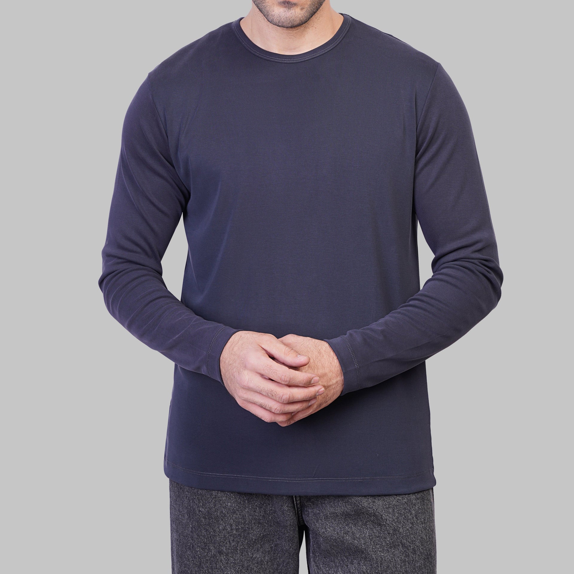 LONG SLEEVE SLIM T-SHIRT - NAVY