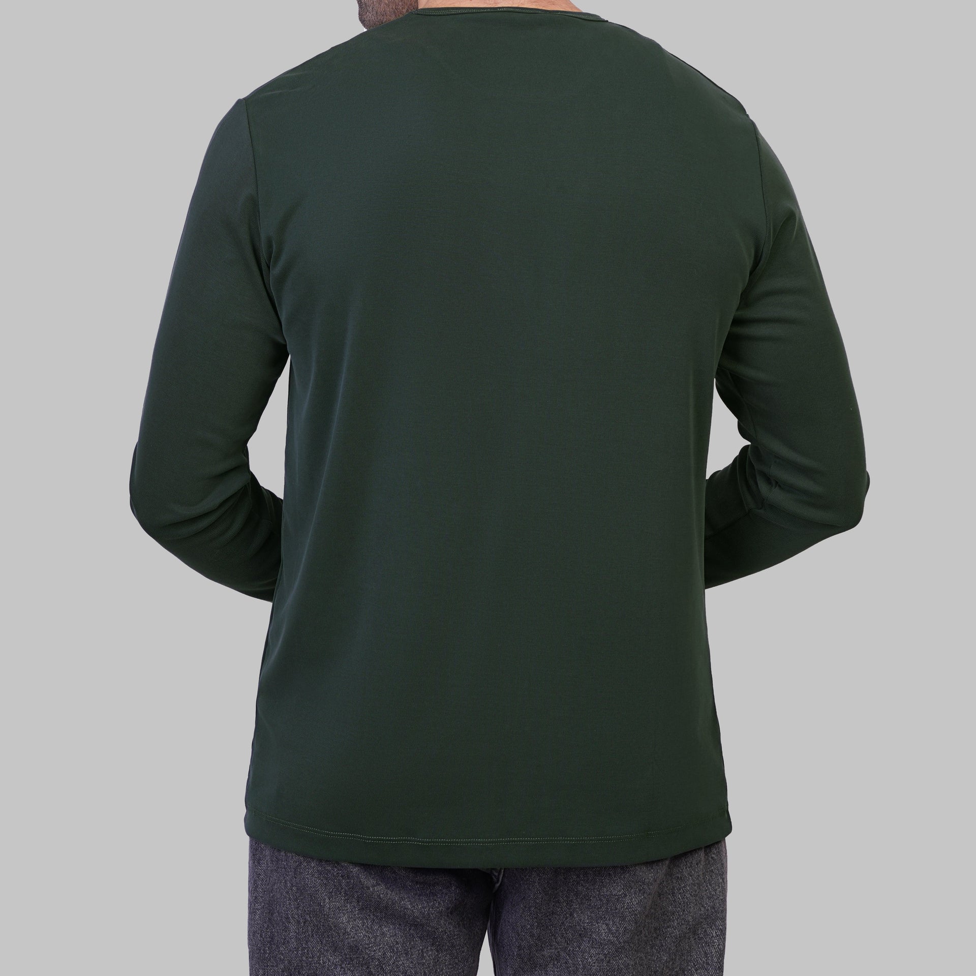 Long-sleeve T-shirt crafted from a soft and flexible blend of modal, polyester, and spandex for a smooth and comfortable fit.